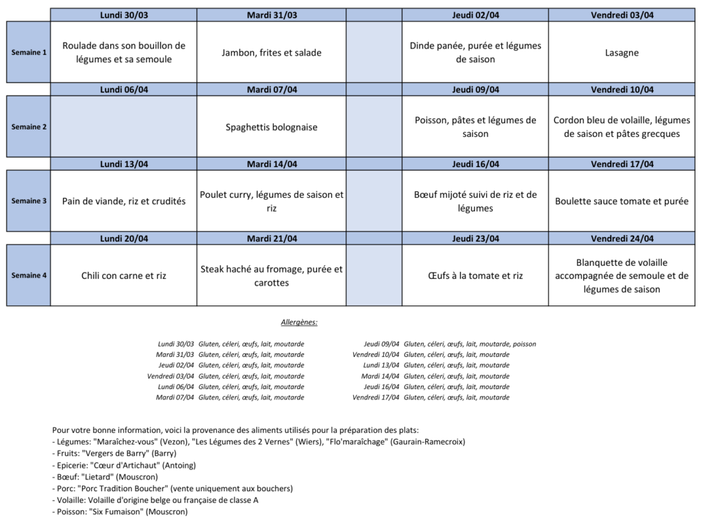 Réservation des repas